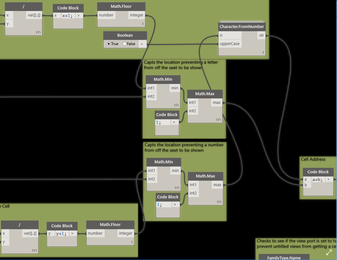 I’m looking to name views on sheets in alpha-numberic order based on a 6x6 grid and am super close - The script I’ve cobbled together from various videos works, but the catch for this particular task requires inverting the x-axis so theoretical detail view “1A” will be on the lower right-hand side near title block, instead of at the binding side. I’ll be upfront, I’ve got very little Dynamo skills and even less Python… but basic premises of each understood. I think the fix lies in inverting the x-axis in the Viewport Properties node python script.