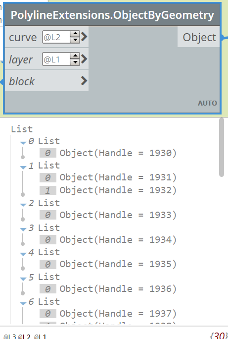 Creating the Autocad polylines out of my Polycurves using the civil 3d toolkit nodes → Result: