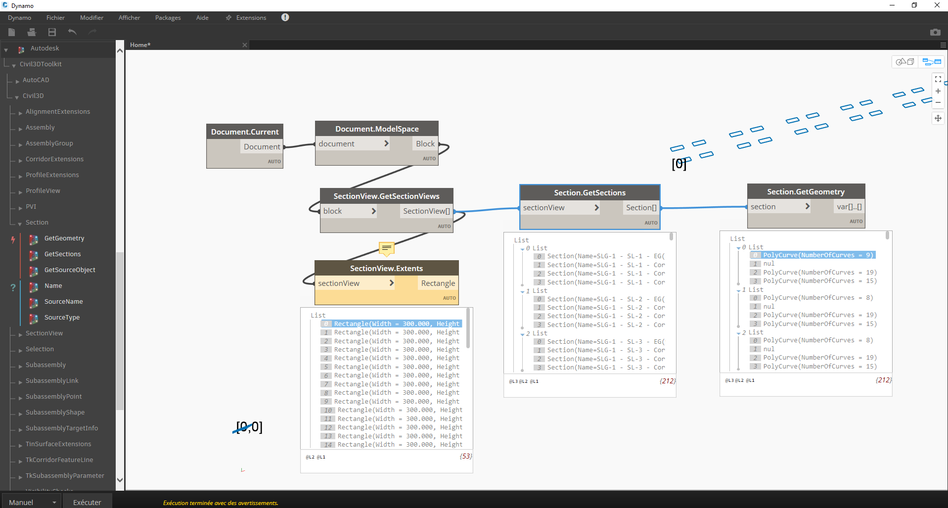 I can open the same drawing and graph in each version, but the C3D 2023/Dynamo 2.13 version doesn’t create the pipes (PipeNetwork.AddPipeByCurve). All the nodes leading into this one look good and output the correct results as far as I can tell. Not sure what other nodes in the Civil3DToolkit are affected.