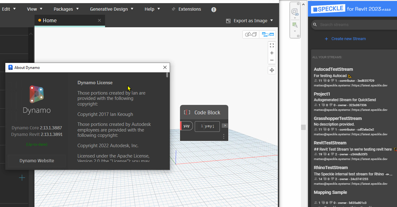 I have Speckle 2.8 for Revit and Dynamo 2.16.1.27 in Revit 2023.1.1 and it is still a problem, after deactivate Speckle, I had access to the Code Blocks