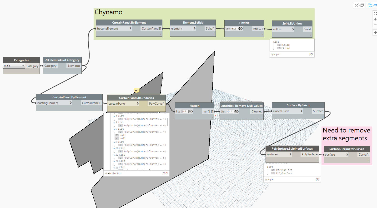 I looked through that post, great share. I am looking for the entire profile of the curtain wall though not the base line. My end goal is to create and elevation with its crop reign the same as the curtain wall’s profile.