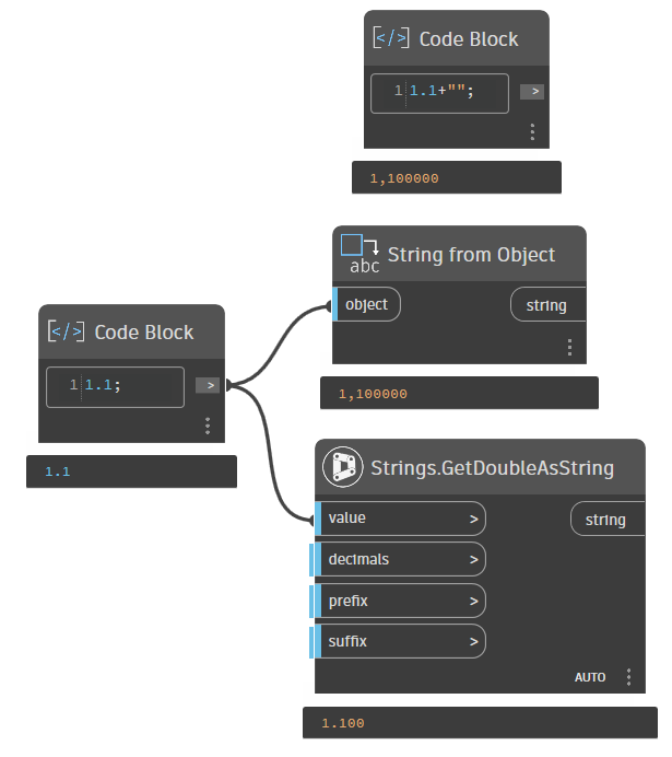 It is absolutely not clear what Dynamo does, nor if it is Dynamo that does these weird things. But if Dynamo shows a comma, while a point should be expected (why doesn’t the Code Block use a comma but only in the conversion to a string), I would’t blindy trust that thousands seperators are not applied