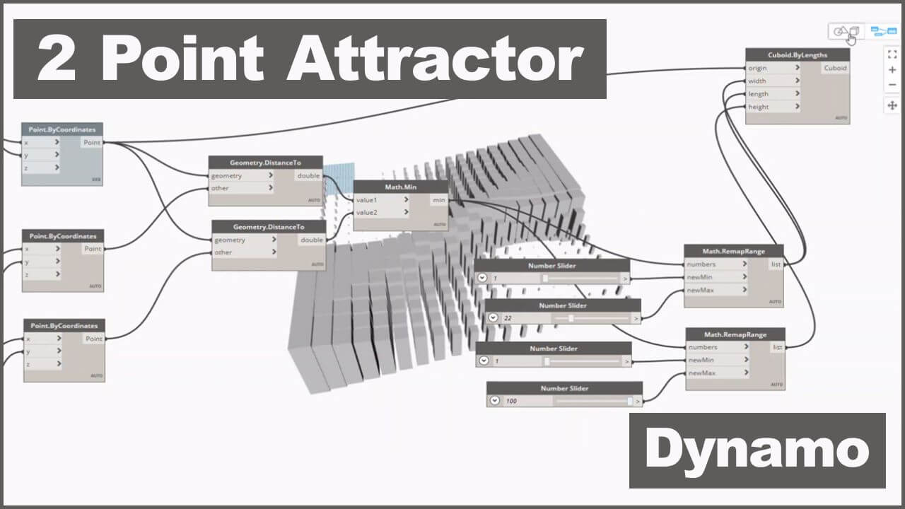 In this Revit Dynamo Tutorial, I will explain how you can produce a two-point attractor in dynamo and make an array of boxes based on these points. First, I will explain how you can work in Dynamo and some tips which will help you work easier and then I will explain how you can make an array of points, define attractors and finally relate them to the boxes dimensions.