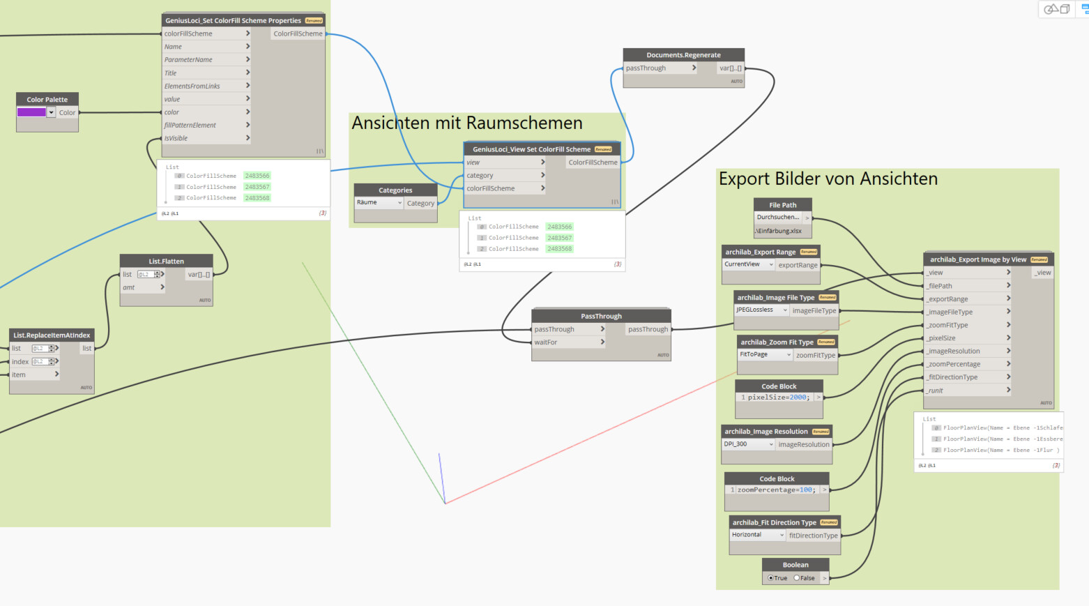 Now I want to export those floorplan views as images. But instead of seeing the changes made in the color fill scheme in the exported picture, the image shows the old color fill scheme… I tried with the “documents.regenerate”-node, but that is not helping.
