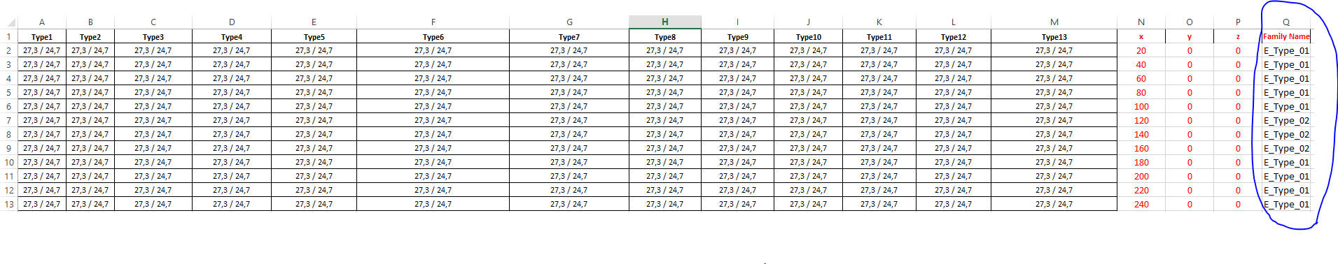 i mean I will create Manuel family type. Because i have to update something in family. But i will keep parameter to same. If i write family name to excel row, its enough for automatic palace in sheet ? Or i have to do something more for multiple family type place sheet.