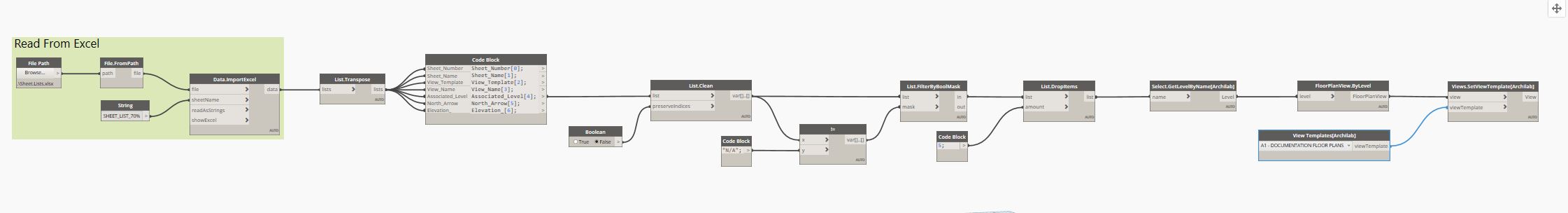 I’ve put together a basic script (see image 2) that reads an excel file to create a number of sheets and assign view templates to them.