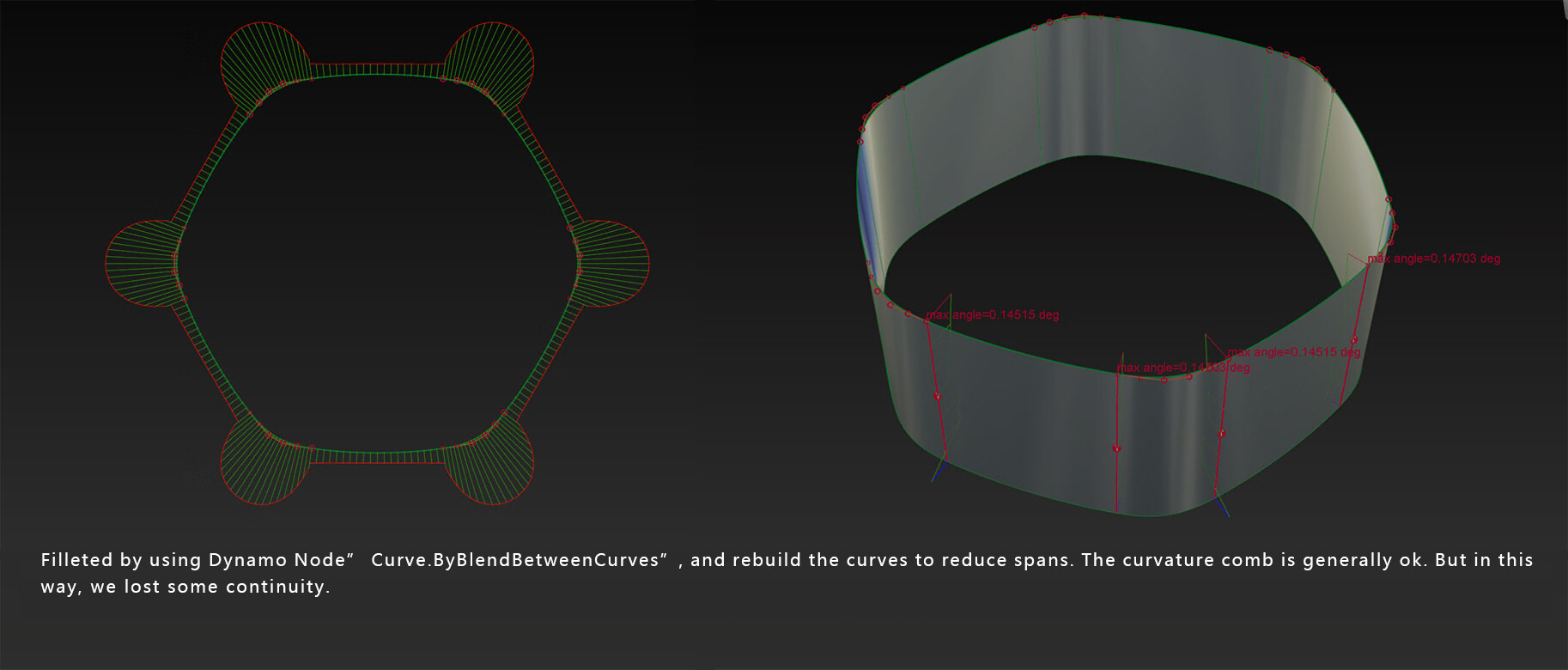 Another my way I send all fillet to Alias layer and rebuild to 5 degree by Alias “rebuildcurves” . But I lose dynamo history.