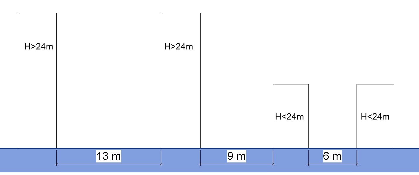 Hello, everyone, I am from China.As an architect, I often meet the situation to arrange the buildings layout on the plot plan based on the fire safety national code. see diagram below.
