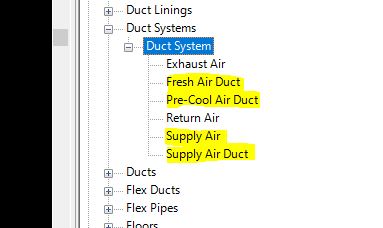 For e.g Duct system type change from “Supply Air” to “Supply Air Duct”.