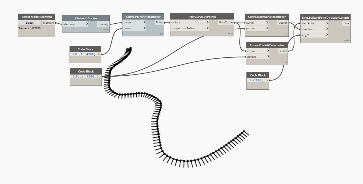 Hello! I’m new to Dynamo and I’m trying to create a plane.byoriginnormal in each point that I have in a curve, but I need a vector that’s normal to each point because it’s a situation in which the vectors from Xaxis or Yaxis wouldn’t give me what I want. So, I tried to extract the vector I need using Curve.Normalatparameter but when I do a line to check it, it’s inclined and not correct.