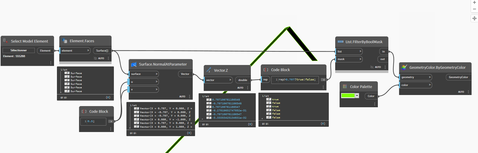 the input of Surface.NormalAtParameter is the output of Element.Faces