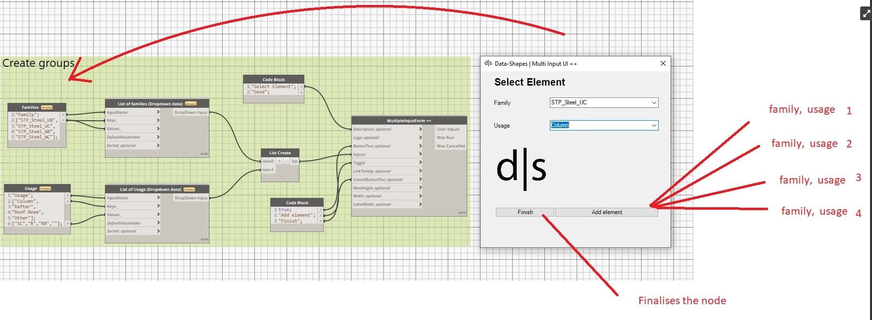 Hello, this is my question. I want Dynamo to run a Data-Shape node like the one shown in the image. However, what I want is that, once running it on dynamo player, if I hit the “Add Element” button, use the output information from de datashape note and add it to a specific list and NOT CLOSE, so I can keep choosing more elements and adding them to that list until I hit the “Finish” button. But everytime I hit “Add Element” it closes the pop up window and I have to start over. Is it possible?