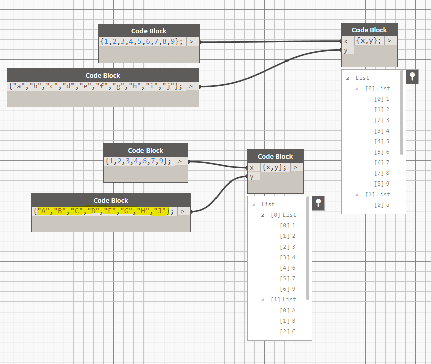 I have two lists of parameter sets. First list says 1=a, 2=b etc. Second list says 1=A, 2=B… second list misses some elements, F and I