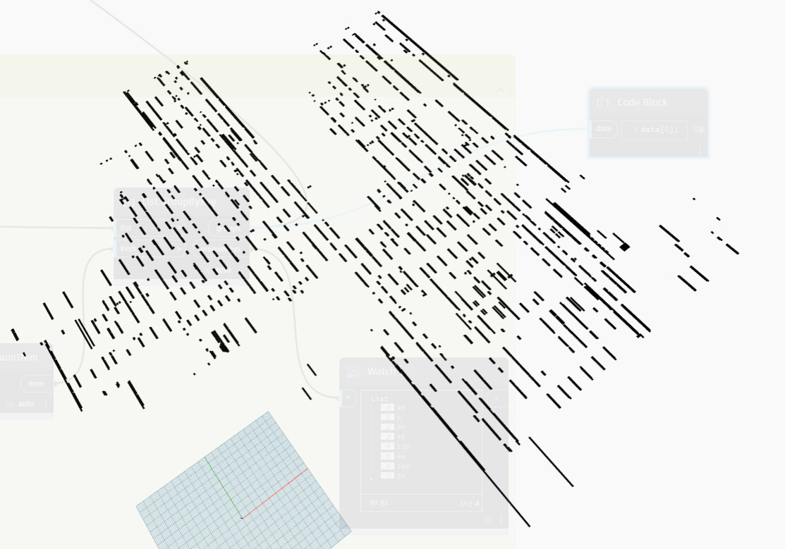 Next step in this process is to find all lines that are colinear (exist in the same vertical plane). I’ve already grouped them by parallel (or at least by angle and reciprocal angle), and proximity (Geometry.GroupByDistance). Ultimately trying to get Walls created from DWG layers.