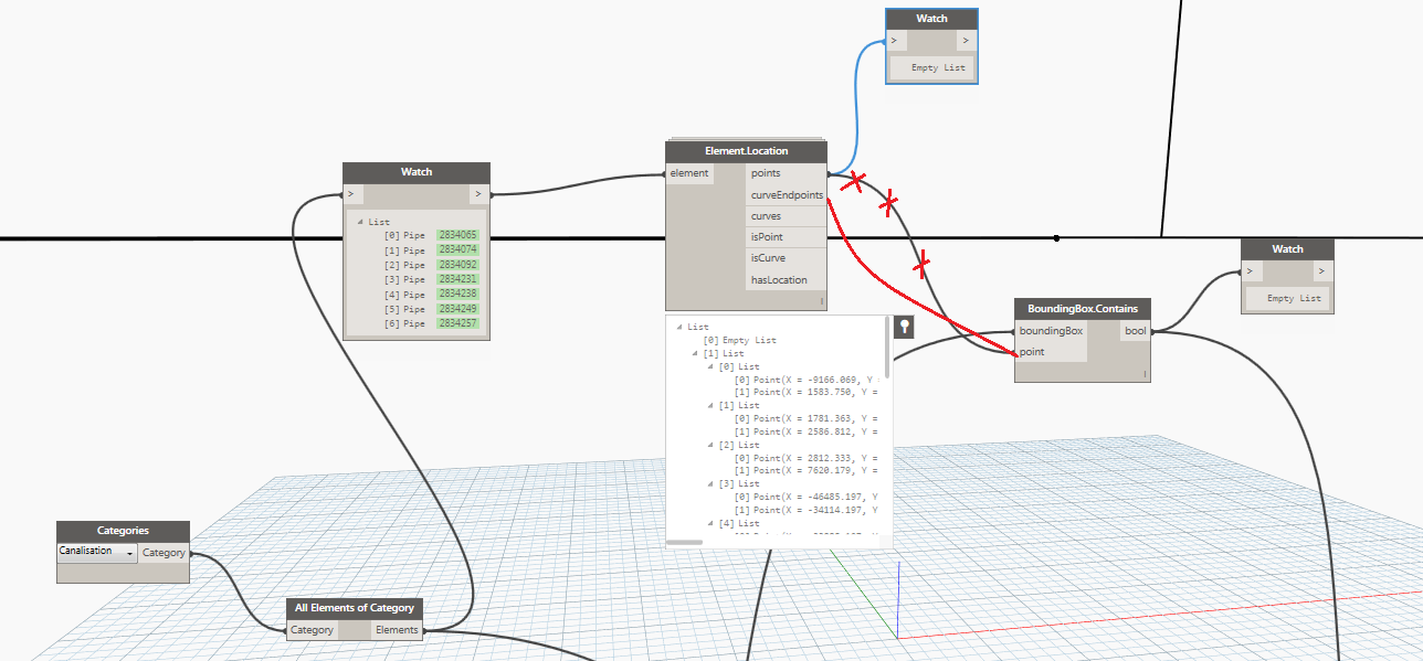 In order to do so, i tried to use element.location node to be able to get pipe’s coordinate, but when i connect the results with the boudingBox.Contains i get an empty list.