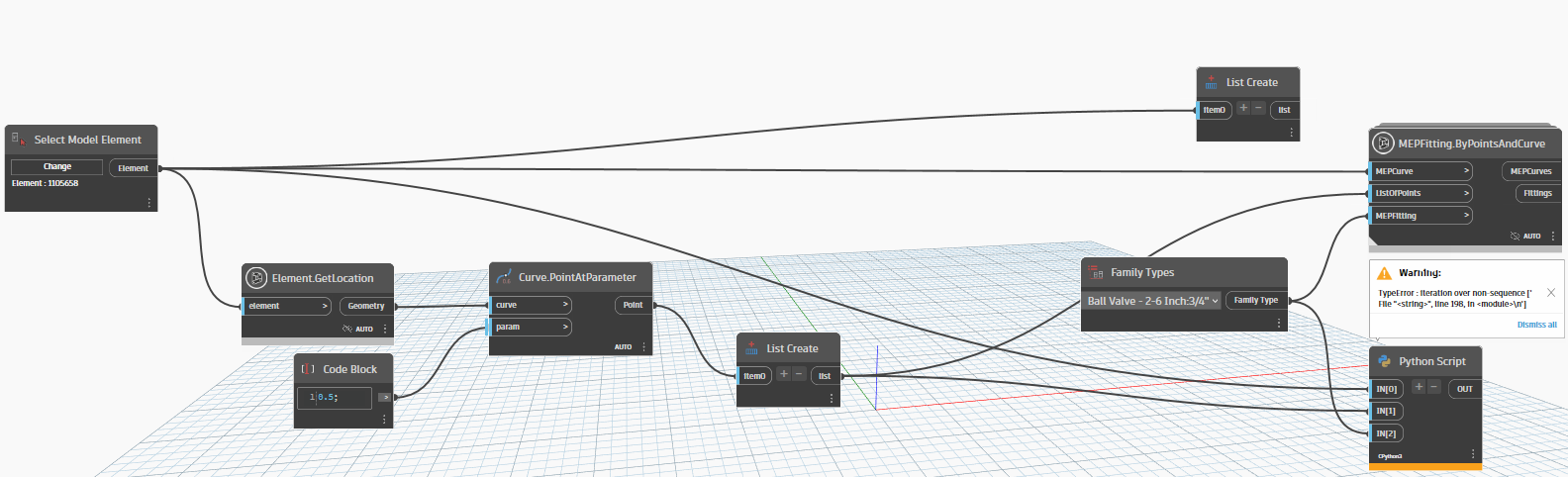 i try to use that node to insert valve in the middle of pipe but unsuccessful, related Python node is extracted and displayed error message so i tried list as input but same error message, i may miss something simple, any insight?