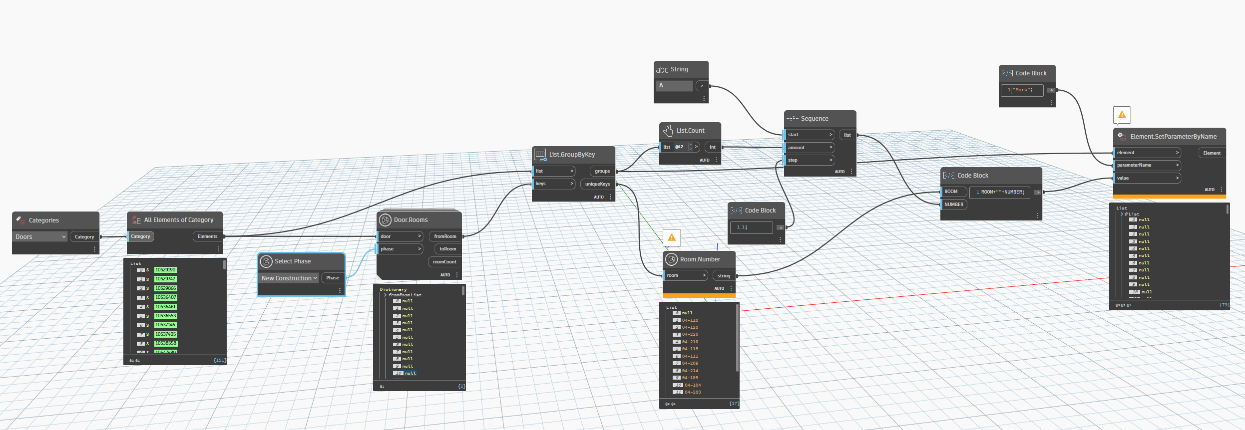 @nicholas.t2TDBX I’m having the same issue where Door.Rooms is returning null for the “To” and “From” rooms even though I have Clockwork 2.12.2 and IronPython2.7.2.5 installed. I have checked the Python script within Door.Rooms and found mine looks different (see below). Do you mind sending a screenshot of what your Door.Rooms looks like as well as the python script code please? Thanks!