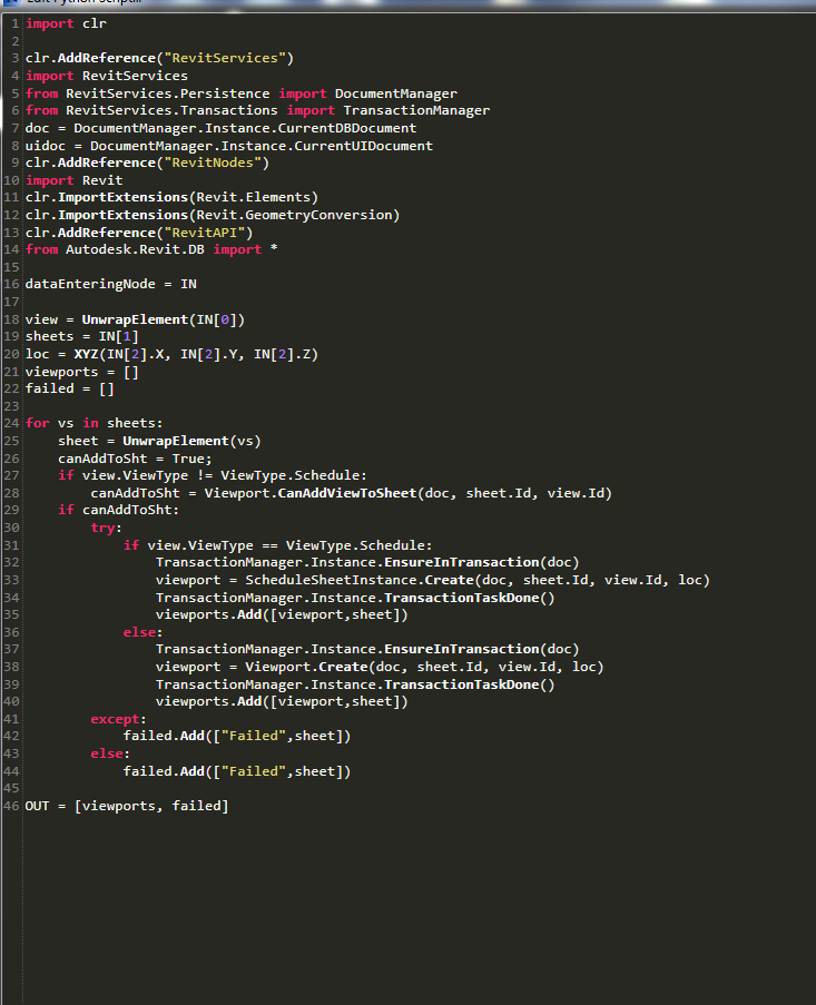 I have been working on this dynamo script that will duplicate a schedule (the number of times the schedule is duplicated is dependent on the number of sheets that contain views), rename the schedule, and change the filter of the schedule. I am now working on placing the corresponding schedules on to sheets. I have referenced several topics in this forum to get this far. Everything is working except when I try to place the schedules to matching sheets. I get the following error. I am new to Dynamo and Python and I am not sure if I have the code indented correctly. Below is what I currently have.
