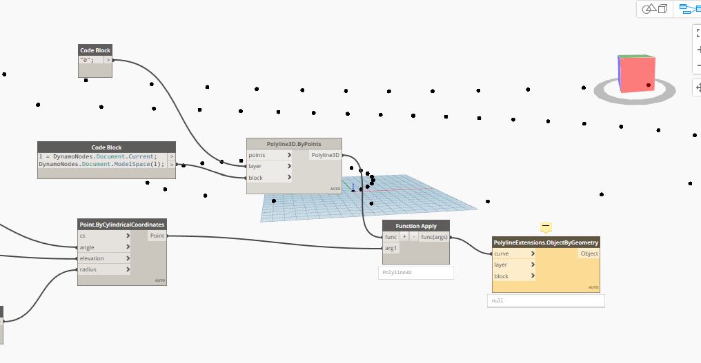 What I meant is that using Function.Apply, Polyline3d.ByPoints executed without warning (which it did even in your image). After that it makes no sense at all calling the PolylineExtensions.ObjectByGeometry. If you care to see the polyline geometry in Dynamo you need to call the Object.Geometry node instead.