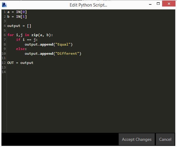 I did next node, I achived to compare each item of list a with all list b but what I want is to compare the first item of list a with the first item of list b.