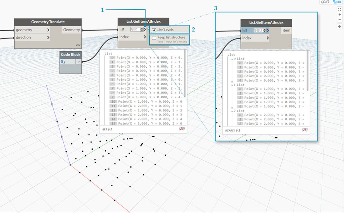 2. Since the grid is constructed with a Range for X, Y and Z, we know that the data is structured with 3 tiers: an X List, Y List and Z List.