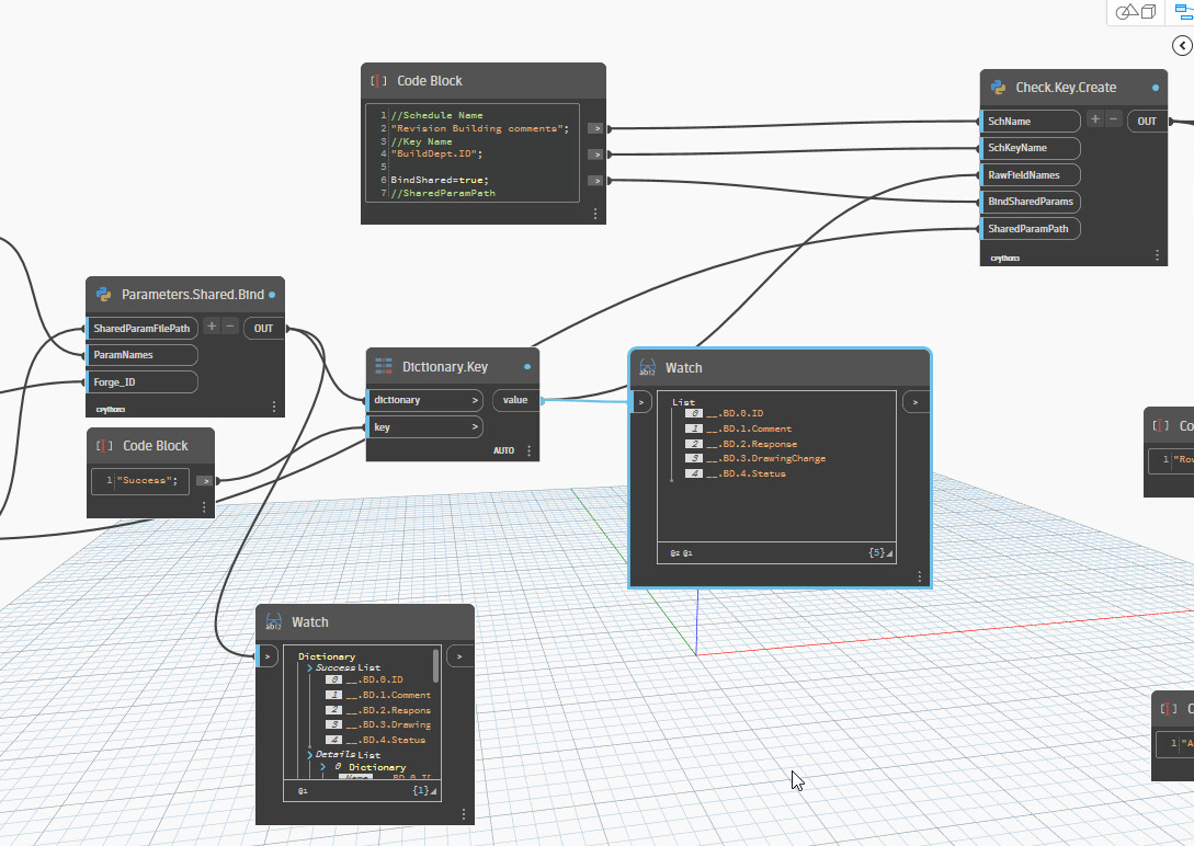 Building comments dynamo- Uses fixed parameters to store building comments and record replies and statuses. I fear there is no ‘legit’ way in the API to fill in place holders. We do have ideate- which can read and write the key schedule but cannot save the key schedule definition