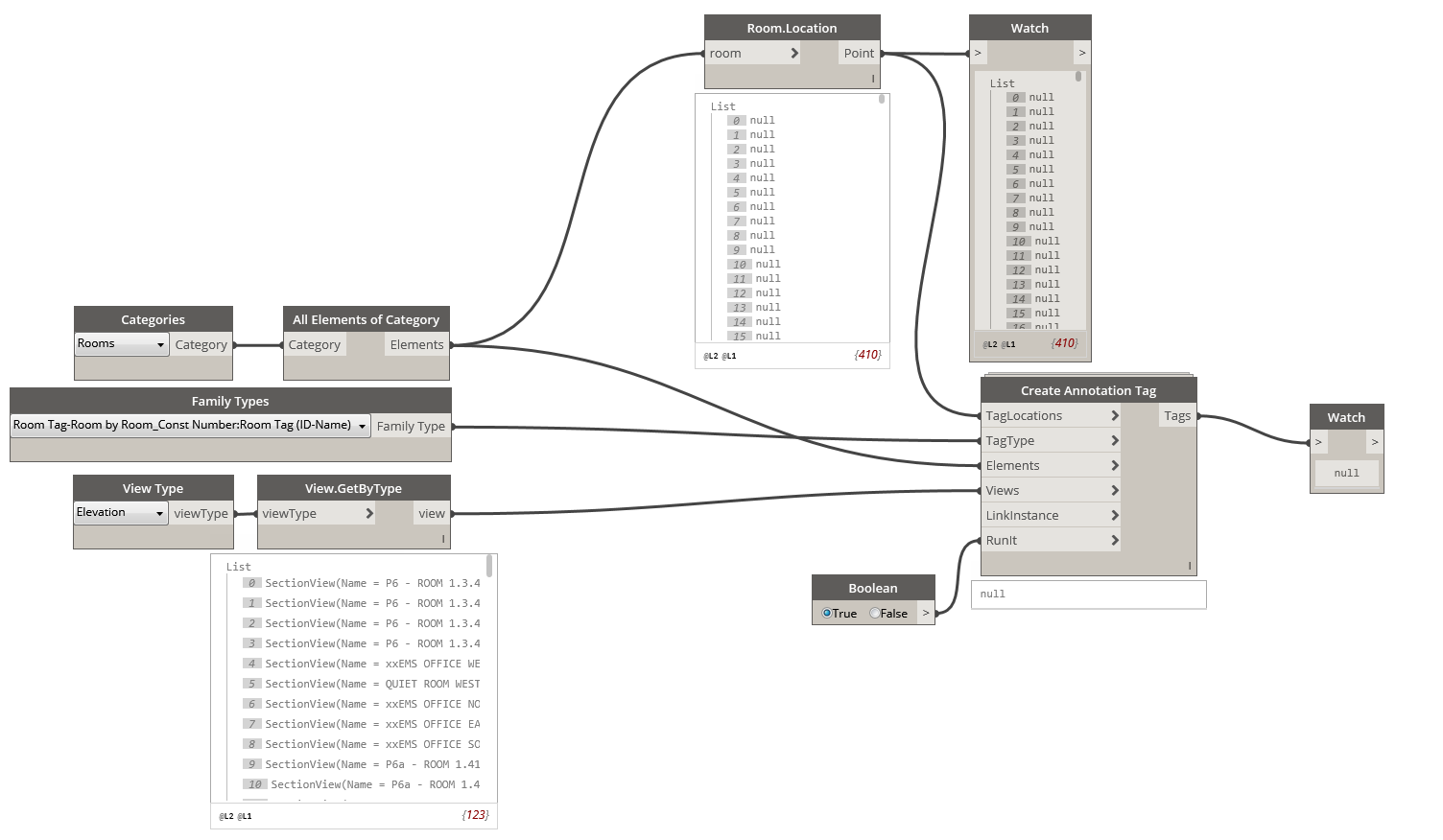 - My Room.Location node is returning nulls and I can’t see why I’m not able to tag all elements at the point created.