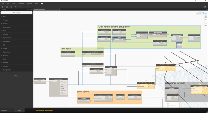 I know their is a topic about pipe hangers already, but im trying to figure out whats wrong with the code im creating. The graph will correctly lay out the hangers on Level 1 but It wont set the anchor height correctly on Level 2. Do i need to modify the family i made to work off levels? Here is the dyn and the revit family im using.