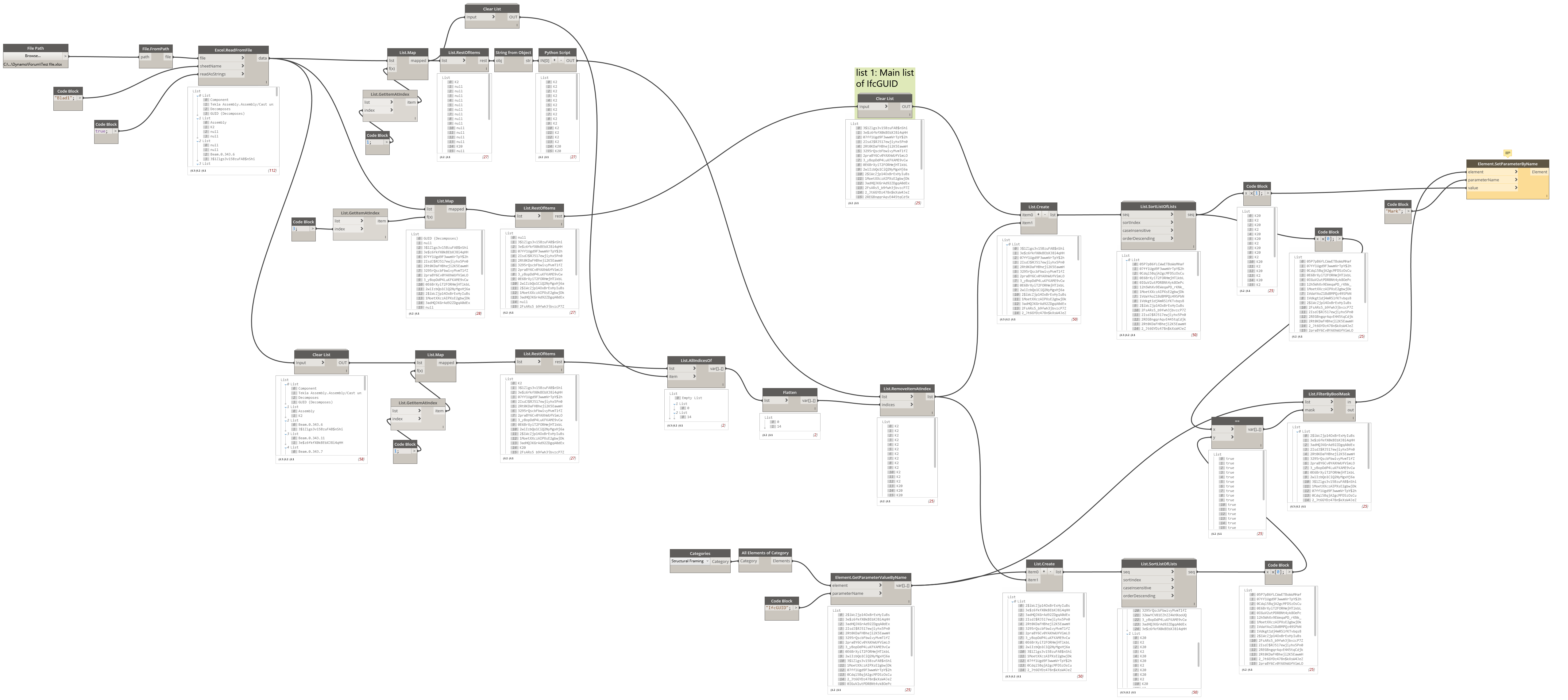 Once I apply the script to my original project with +/- 7100 Excel rows with IfcGUIDs Dynamo keeps loading and my PC can’t handle the steps. I even tried to cut my project in 4 pieces, in about 2000 Excel rows, but still my PC can’t handle it.
