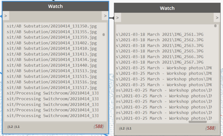 Both of these lists contain the same file names, except the one on the right has more in the strings than just the information in the left list (file paths).