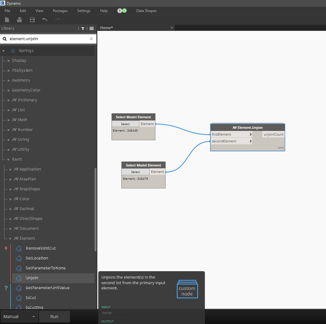 I am not able to find Springs.Element.Unjoin package. Actually I wish to make a script for Unjoin elements for a warning “Highlighted elements are joined but do not intersect”. But not getting above mentioned package.