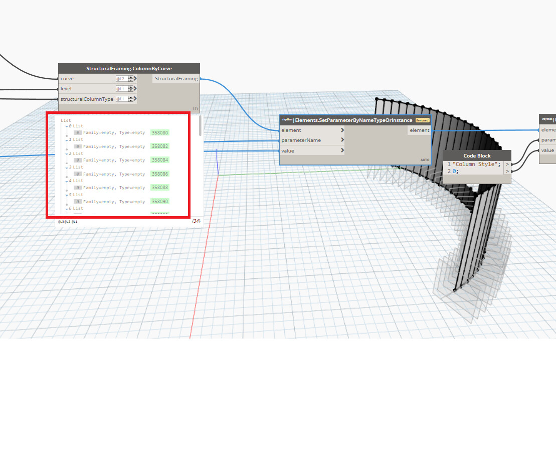 I am trying to place column family by curve along the wall. I am extracting the curves by intersection of the middle surface and normal plane on column location point. But each time I am trying to place the column family, I am getting the above mentioned Revit error. Can someone please suggest why I am getting it and how can I bypass this error. I have also attached the .dyn file with it.
