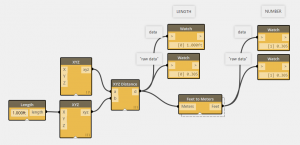 In the second, lower part, of your definition is a variation on that earlier theme. The length “1.5 ft” is behaving as a number when it comes out of the Meters to Feet node because inside a formula node is multiplying by 3-something. You are using a formula node again to effectively compare “4.921” to the various lengths coming from XYZ Distance, which converts them to numbers as well, using the number of their feet-equivalent since you are viewing lengths in feet.